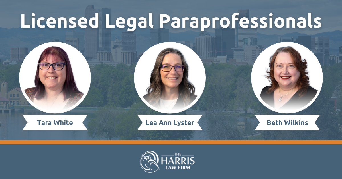 The Harris Law Firm would like to congratulate three of our team members on becoming part of Colorado’s first class of Licensed Legal Paraprofessionals!